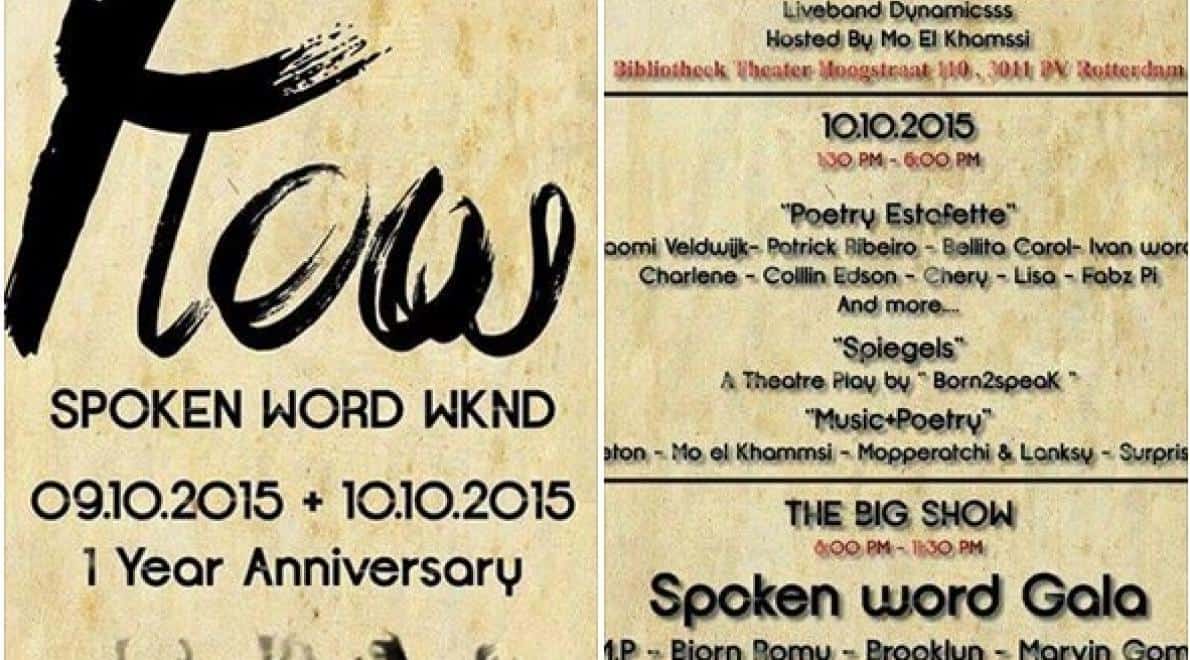 Op 10 oktober bestaat FLOW 1 jaar en dat gaan ze uitgebreid vieren met het eerste Spoken Word weekend !