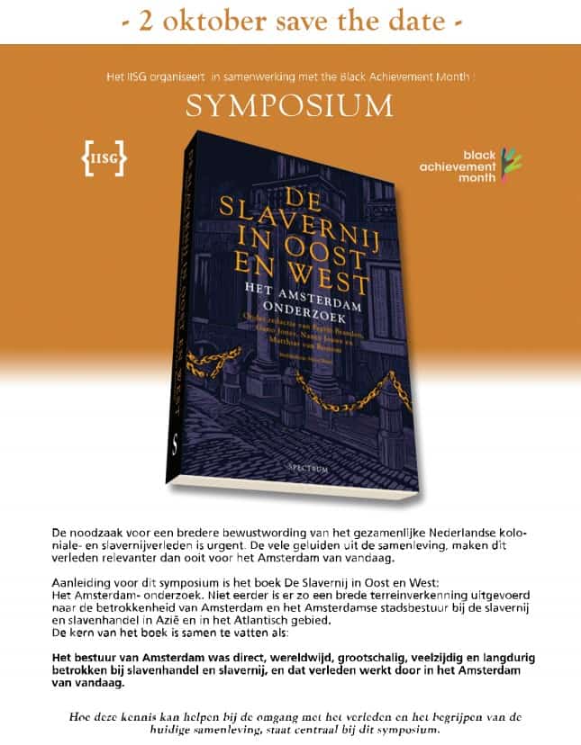 Het IISG organiseert op vrijdag 2 oktober as. in samenwerking met the Black Achievement Month het symposium “De Slavernij in Oost en West: het Amsterdam-onderzoek”.