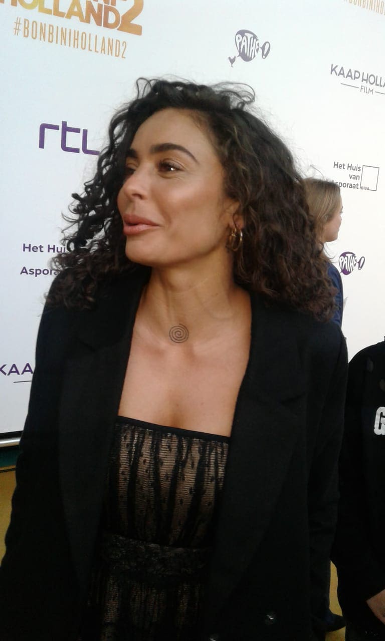 Fajah Lourens betreedt de rode loper samen met haar zoon. Ze zegt dat ze benieuwd is naar de film. "Jandino's humor ligt mij wel. Ik vind het gewoon grappig om ernaar te kijken. Ik ben erg benieuwd", zegt ze.