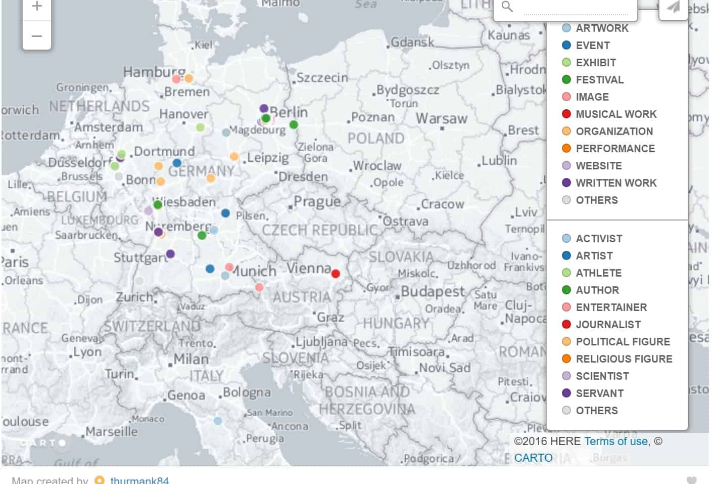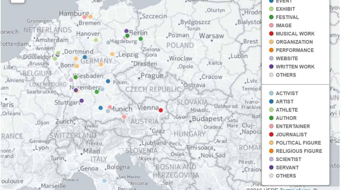 De Zwarte Mid Europa kaart onthult voornamelijk Duitse vertegenwoordiging en producties over zwart zijn en zwarte mensen; Duitse kunst, muziek, literatuur en andere culture producten die zwarte mensen toonden.