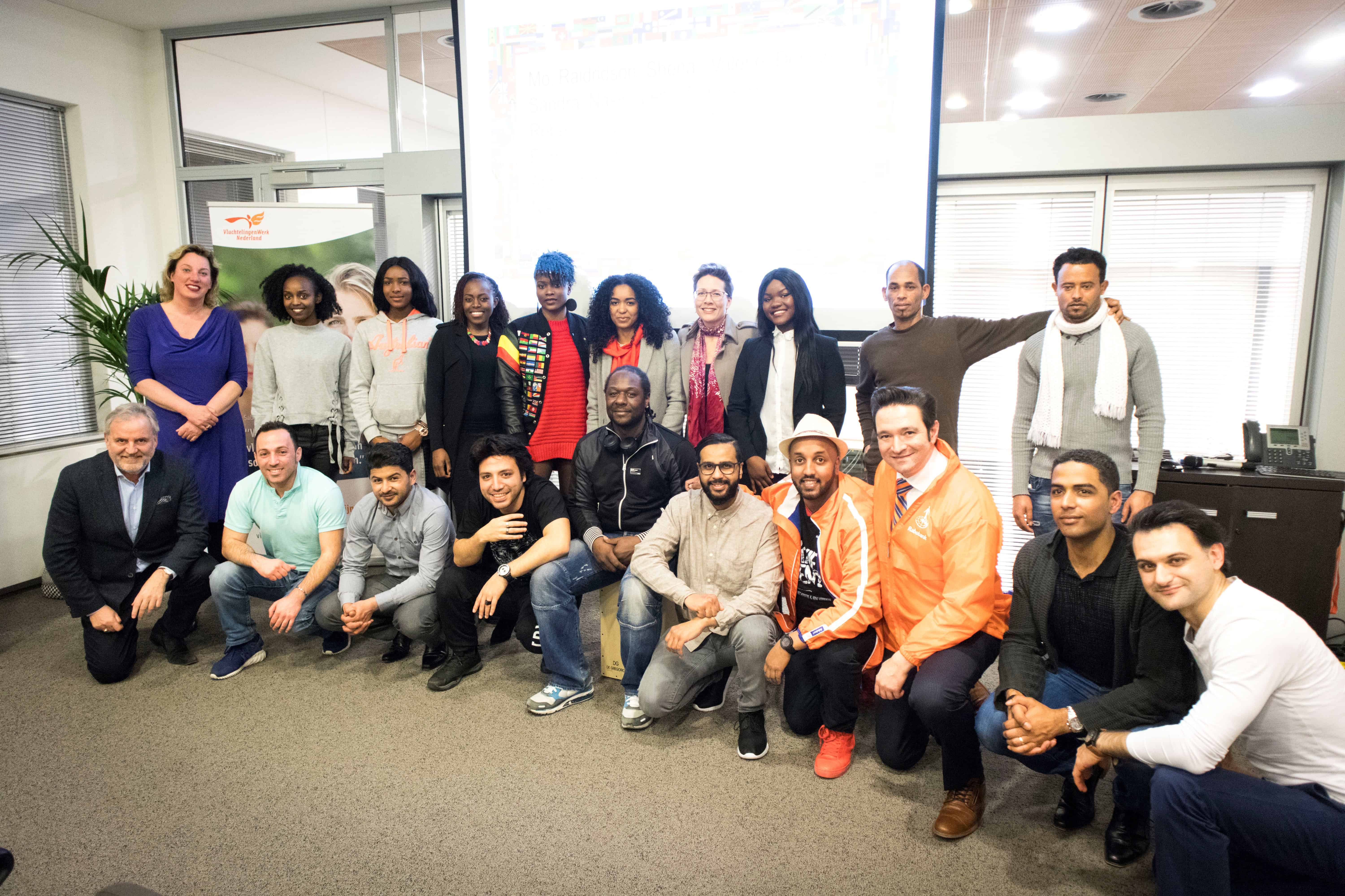 Op de hoogste etage van Rabobank Almere vond maandagavond 19 maart de kick off van het World Team plaats. Hersi: “Willeke Waller van Rabobank Almere ben ik heel dankbaar dat zij het mogelijk heeft gemaakt om iedereen hier zo hartelijk te ontvangen.” Directievoorzitter Ugur Özcan heette alle wandelaars welkom, die vanuit heel Nederland naar Almere waren afgereisd. Ook Jerzy Soetekouw, lijsttrekker van de PvdA Almere, stak de wandelaars een hart onder de riem.