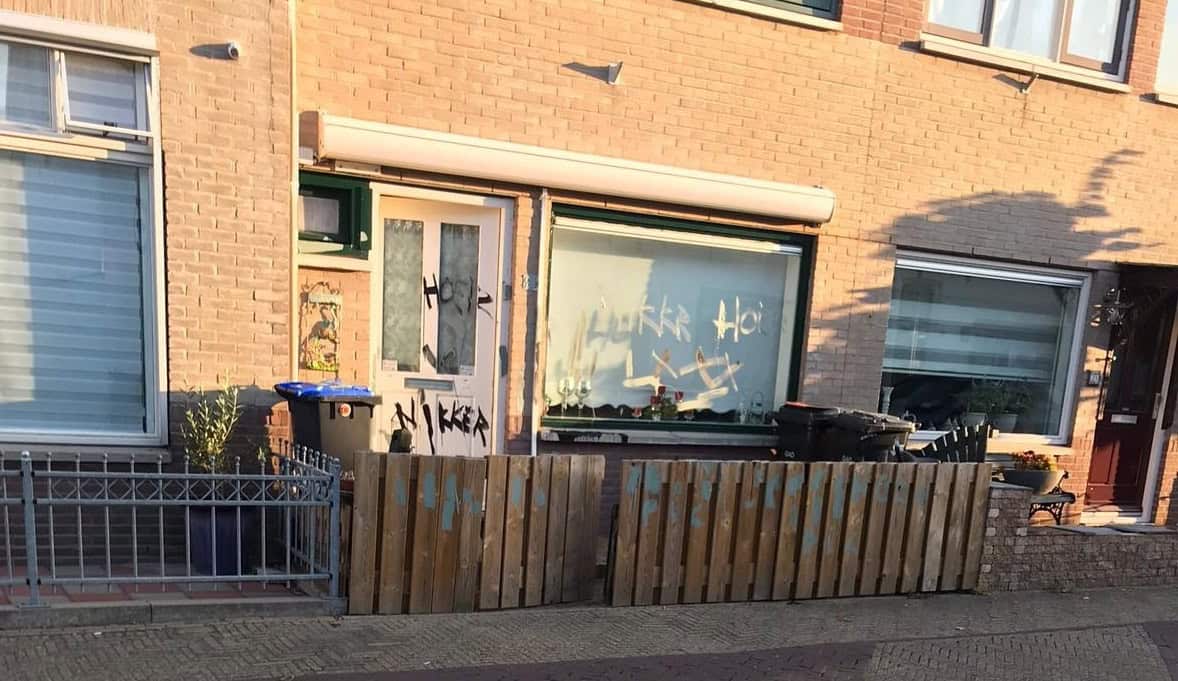 Iemand had met zwarte verf de woorden “HO.R” en “N.KK.R” op de voorgevel geschreven. Ook de schutting was beklad en zelfs een babywagen die voor het huis stond moest het ontgelden. “Ik schrok er wel van want dit was best wel heftig. We zijn toen maar bij de buurman aan wezen bellen om hem wakker te maken. Hij wist nog niet eens wat er met zijn huis gedaan was,” vertelt Maduro.