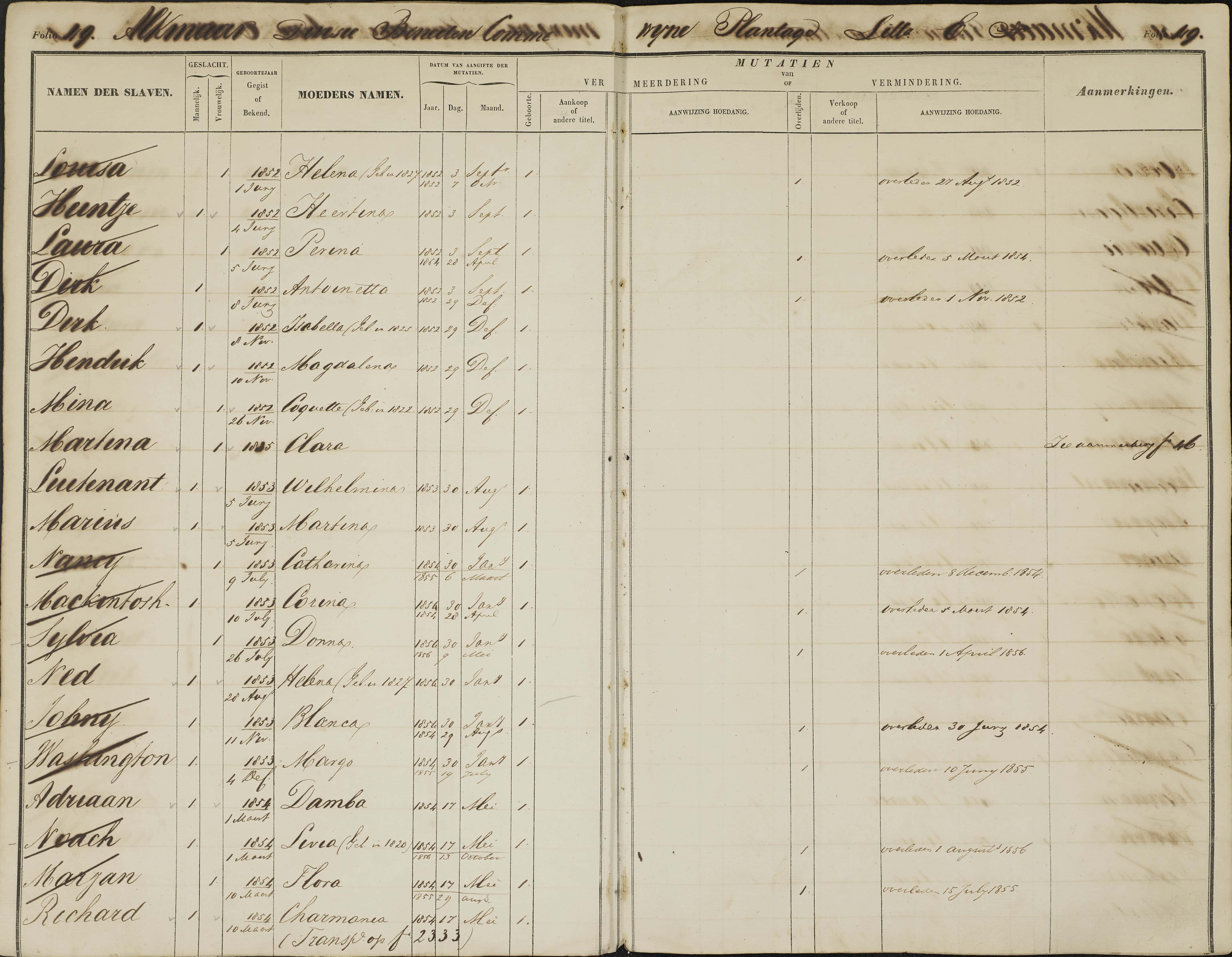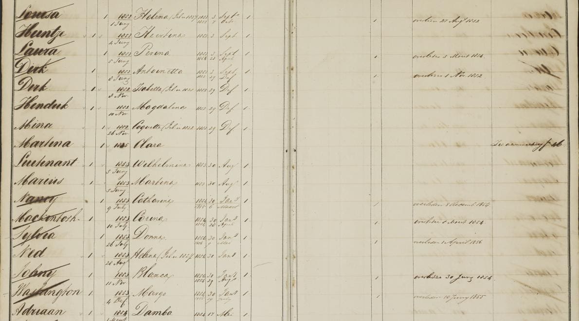 In de Surinaamse slavenregisters staan naar schatting tachtigduizend mensen geregistreerd die tussen 1830 en de afschaffing van de slavernij in 1863, in Suriname in slavernij leefden. Slaveneigenaren moesten de mensen die in hun bezit waren laten registreren, met vermelding van naam, geboortedatum en de naam van de moeder en informatie over geboorte, overlijden, vrijlating, verkoop en andere informatie die belangrijk was voor de status en waarde van mensen in slavernij.
