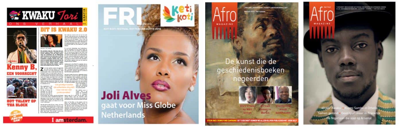 Onze focus is online, maar we gaven verschillende bladen uit, voor Kwaku Festival en voor Keti Koti Festival. De 2019 editie wordt in de hand gedrukt van de bezoekers aan deze festivals, Keti Koti in Groningen, Kwakoe Festival in Antwerpen en The Hague African Festival: Den Haag. Meer dan 500,000 bezoekers. En daar is ons blad in het vizier van.