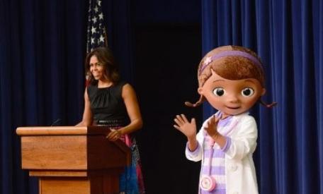 Michelle Obama bezoekt kindertekenfilm serie Doc McStuffins