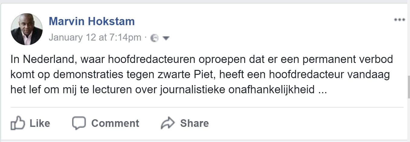 Welke journalistieke onafhankelijkheid? dacht ik. En ik ging los op mijn Facebook pagina.