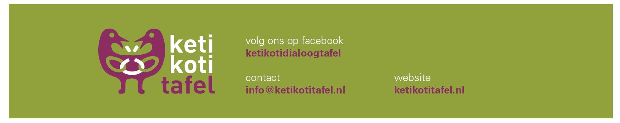 De Keti Koti (Dialoog) Tafel is een nieuwe traditie waarbij middels het uitwisselen van persoonlijke ervaringen stil gestaan wordt bij de hedendaagse gevolgen van het Nederlandse slavernij verleden met witte en zwarte Nederlanders en alle kleuren daar tussen in. Tijdens de dialoog gebruiken we een gezamenlijke maaltijd die ons herinnert aan het slavernijverleden waarbij aan het begin en aan het eind, passende rituelen worden uitgevoerd. Tussen de gesprekken door zingt een koor de treur- en bevrijdingsliederen die gezongen werden ten tijden van de slavernij.