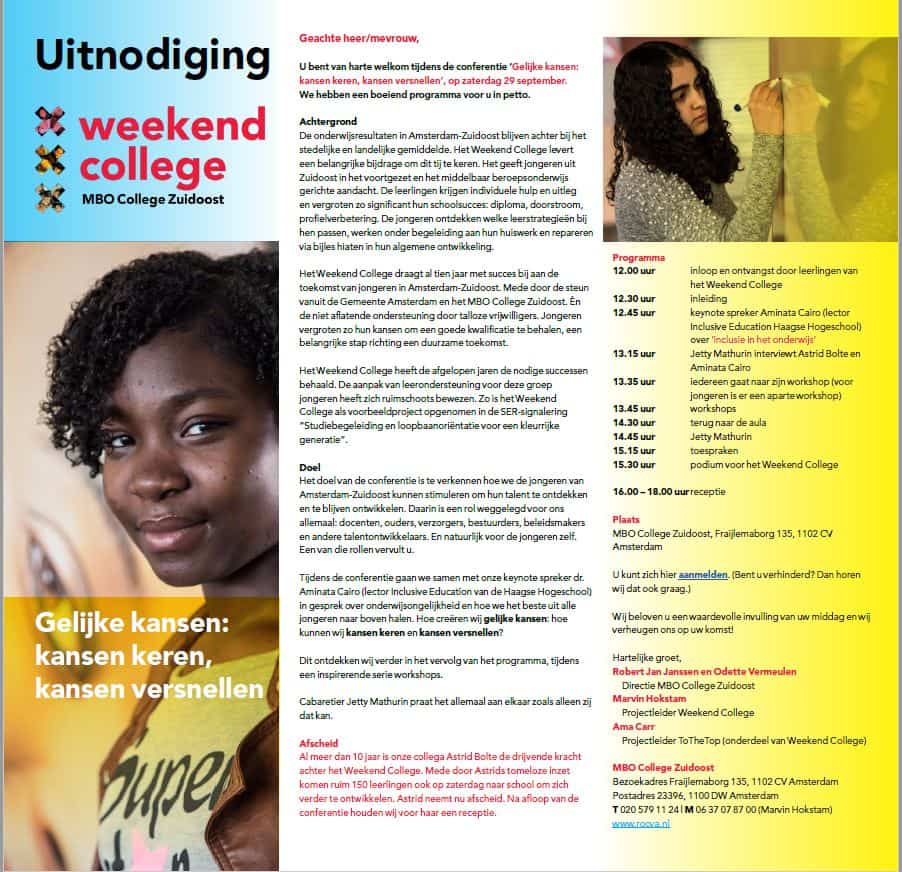 Dit is waarom organisaties als het Weekend College, die onderwijsondersteuning bieden aan mensen die het nodig hebben, zo belangrijk zijn. En het is waarom we hier zijn vandaag, om het probleem van onderwijsongelijkheid te bespreken. Het is me daarom een genoegen om dit gezelschap van onderwijsprofessionals, ambtenaren, policy makers, ouders, universiteitsstudenten, etc te verwelkomen.