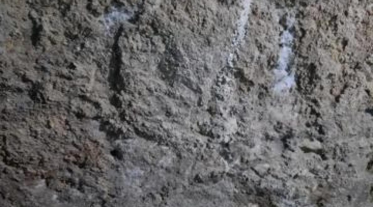 Archeologen hebben met witte verf gemarkeerd hoe hoog de uitwerpselen wel reikten vanaf de vloer van de bedompte kerker, waar soms wel 200 man in opgesloten zaten.