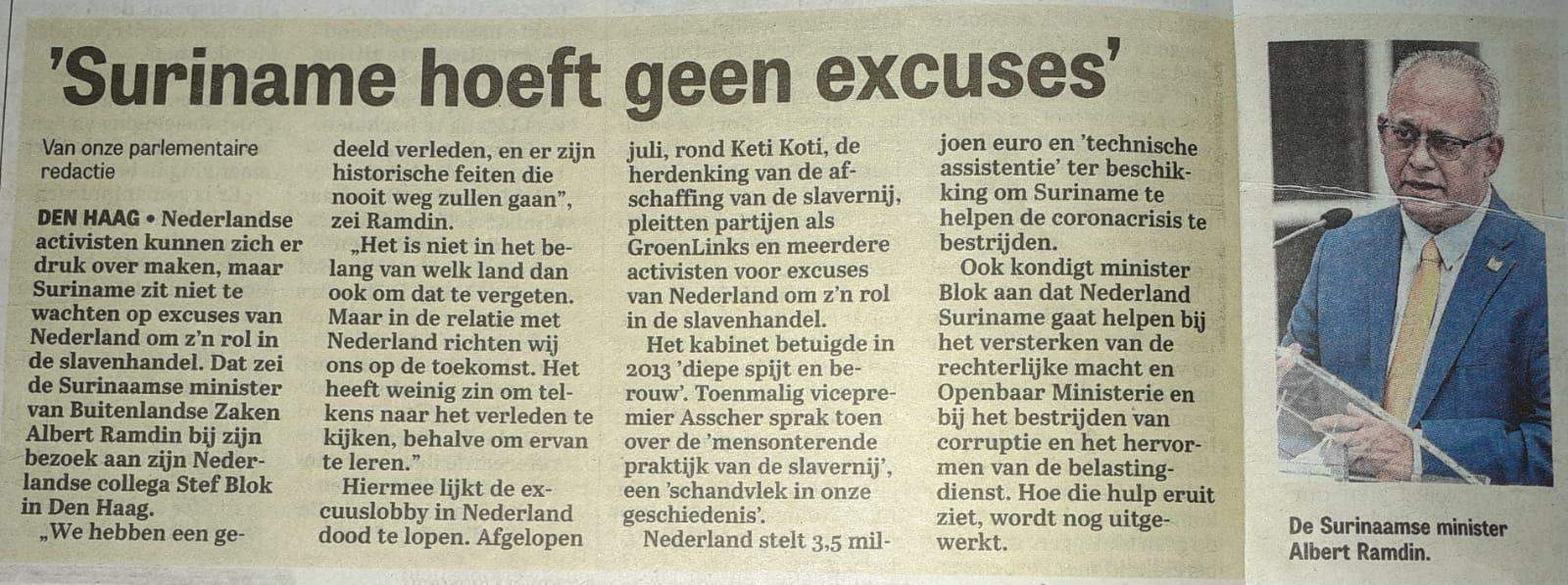 Als de regering van Suriname geen excuses behoeft voor haar marginalisatie en uitbuiting en plundering en verkrachting en moord en manipulatie en racisme en discriminatie tijdens en na de kolonisatie, dan is dat haar goed recht.