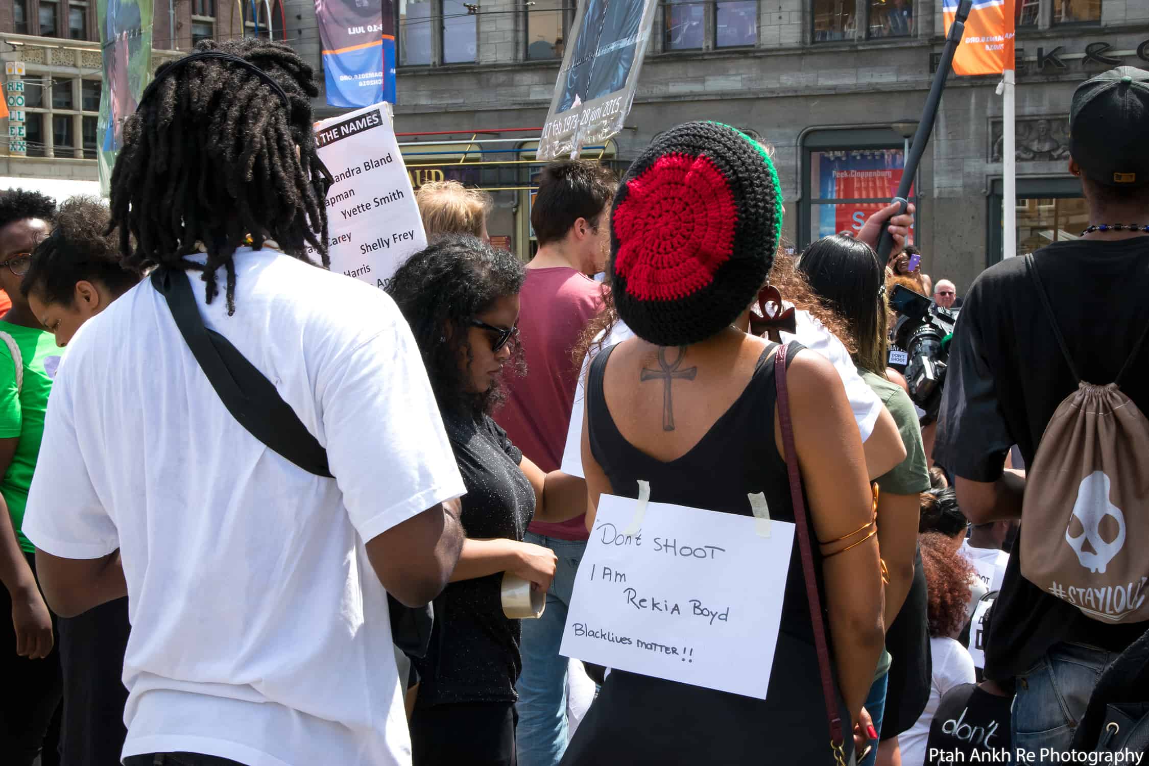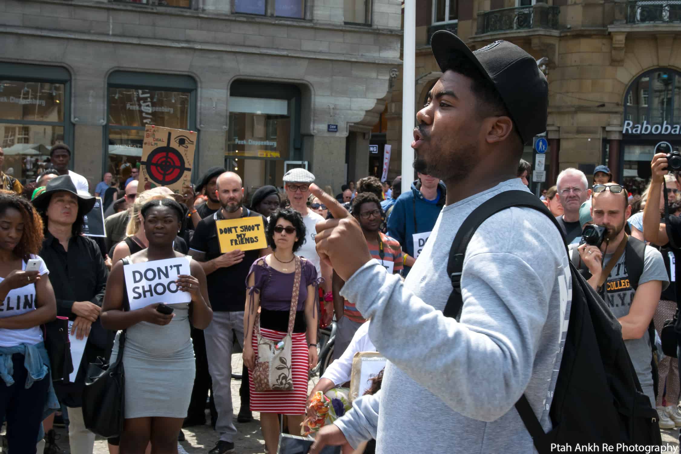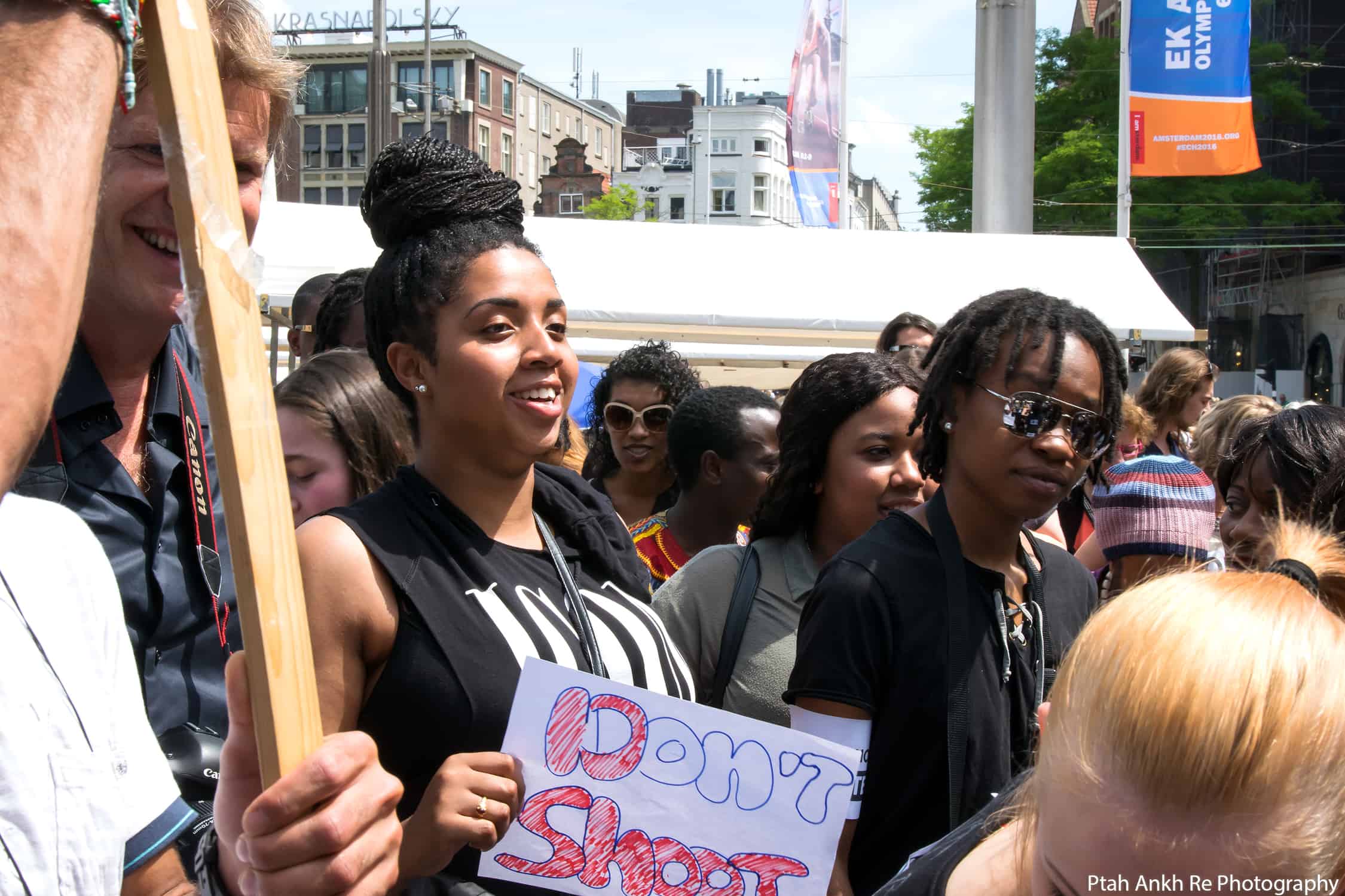 Wij zijn het politiegeweld spuug en spuugzat. En dat dacht Anne ook, initiatiefneemster van het vreedzame protest . Honderden mensen verzamelden zich uit alle windstreken op de Dam.