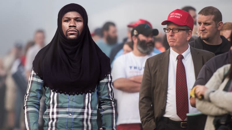 De boodschap is desalniettemin duidelijk. Je fuckt niet met Floyd Mayweather, ook niet wanneer hij er uitziet als een lief zwak vrouwtje in een hoofddoek en is hij in de minderheid op een bijeenkomst van een dolgedraaide politicus vol racisten en fascisten.