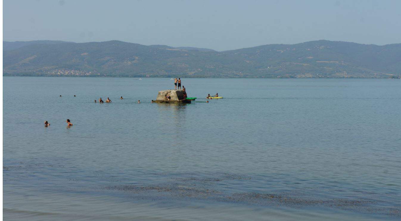 Twee jaar geleden, tijdens vakantie in Italië, waren we beland bij Lago di Trasimeno, een ondiep meer met lekker warm water. Je kon tot het midden lopen waar er een grote steen was, waar je op kon klimmen en van af kon duiken.
