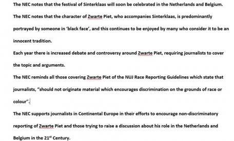 Britse journalistenunie roept Nederlandse journalisten op tot objectiviteit in zwarte Pietverslaggeving